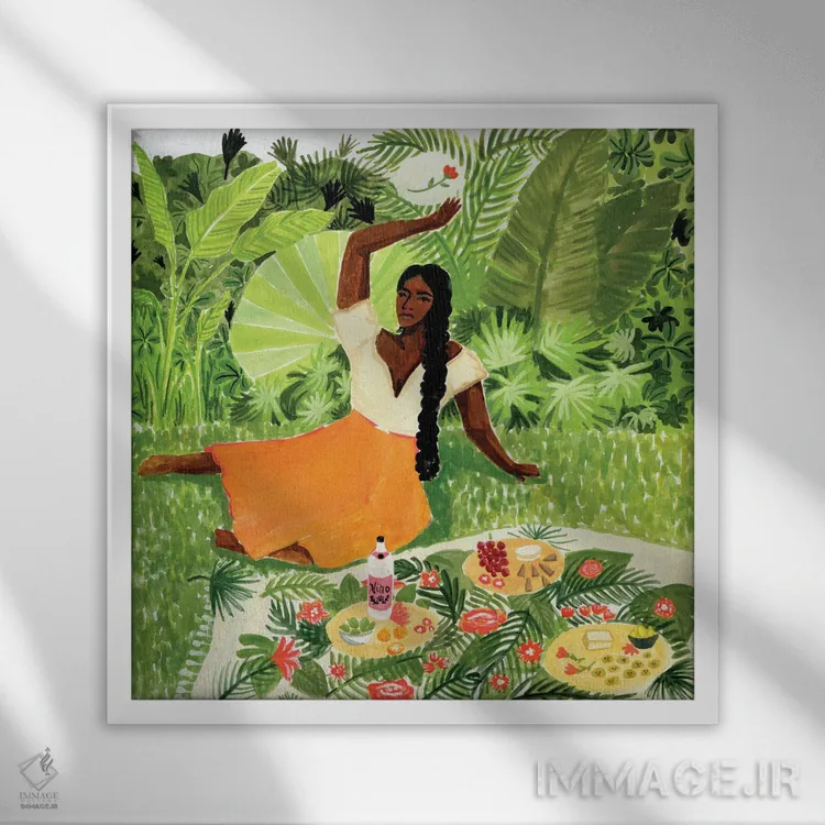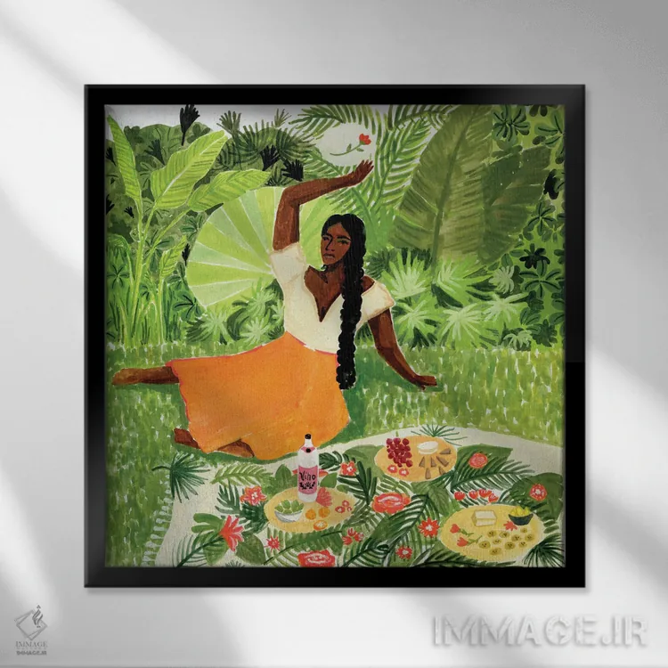 براساس پالت ترکیبی اثر، قاب تیک گرم (چوبی) پیشنهاد اول است و مشکی مات (فریم متوسط) مکمل.