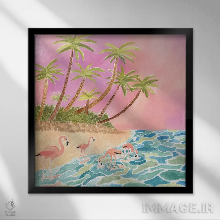 برای دیوارهای ساده، «فلامینگوها» اثرِ «کارولین چسیا» بافت و جزئیات را طوری نشان میدهد که نگاه میماند؛ برای خانههایی با چوب و پارچههای گرم انتخابی خوشسلیقه است. حسش صمیمی است، اما کیفیتش جدی و خوشپرداخت.