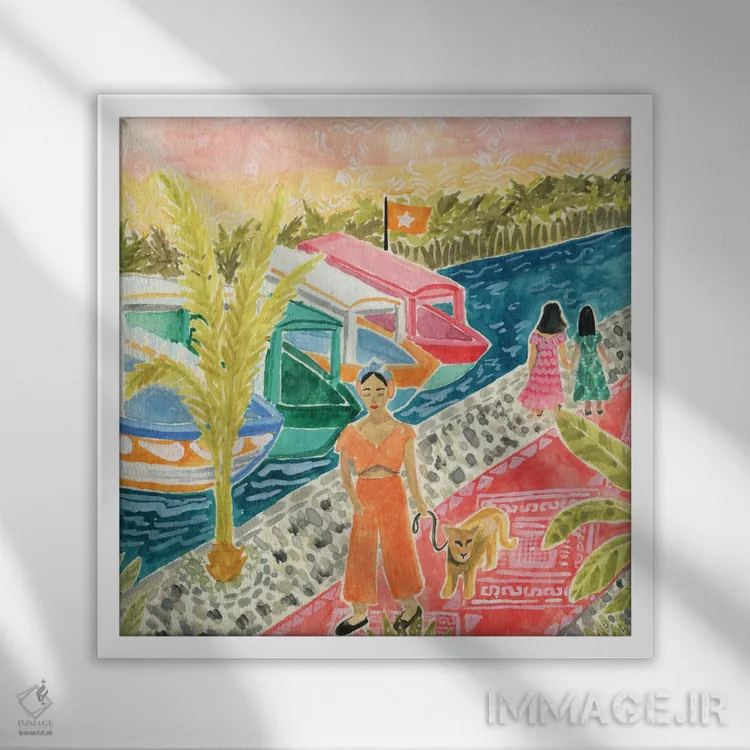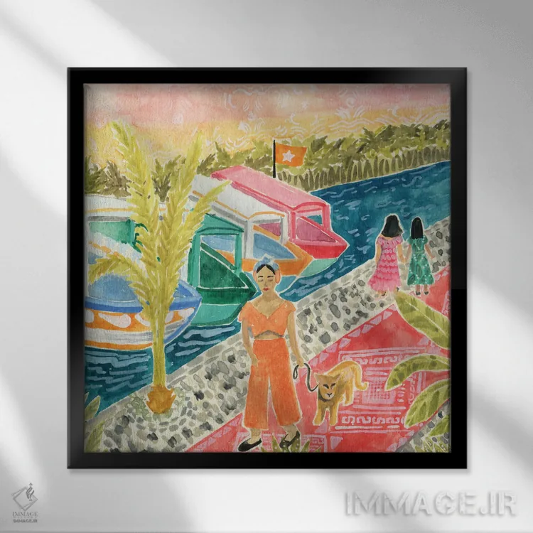 براساس پالت ترکیبی اثر، قاب تیک گرم (چوبی) پیشنهاد اول است و مشکی مات (فریم متوسط) مکمل. برای سفارشهای پروژهای با ابعاد و قابهای اختصاصی با ایماژ در تماس باشید.