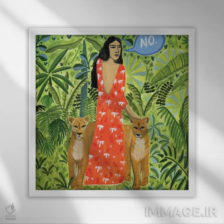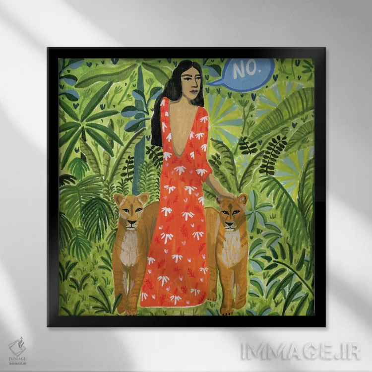 براساس پالت ترکیبی اثر، قاب تیک گرم (چوبی) پیشنهاد اول است و مشکی مات (فریم متوسط) مکمل. برای سفارشهای پروژهای با ابعاد و قابهای اختصاصی با ایماژ در تماس باشید.