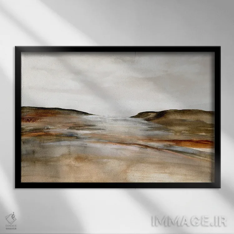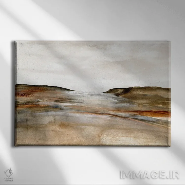 در «آبرنگهای کویر شتریرنگ» اثرِ «جی لاندو»، ریتم بصری به چشم میآید؛ مناسب برای دیوار شاخص کنار مبلمان ساده.