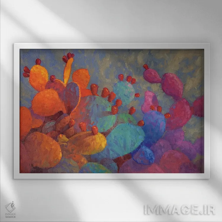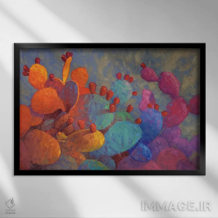 براساس پالت ترکیبی اثر، قاب تیک گرم (چوبی) پیشنهاد اول است و مشکی مات (فریم متوسط) مکمل. برای سفارشهای پروژهای با ابعاد و قابهای اختصاصی با ایماژ در تماس باشید.
