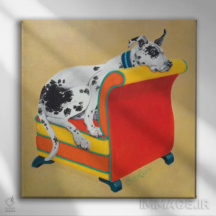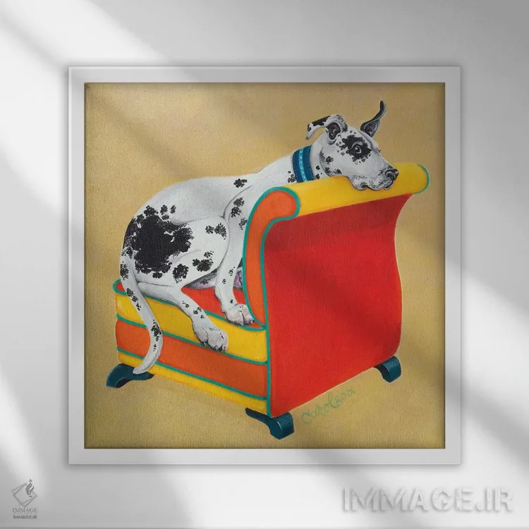 این اثر با عنوان «گریت باور روی زمینه نارنجی (نوعی سگ)» اثرِ «کارول دیلون» یک لبخند ریز به چیدمان میدهد؛ برای اتاق کودک (بدون لحن کودکانه) انتخابی خوشسلیقه است. هم فضا را گرم میکند، هم شلوغش نمیکند.