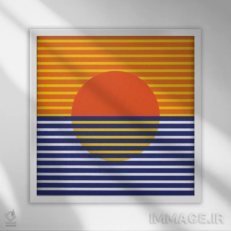 تابلو خورشید دو نیم پرتقالی اثر دیزاینز سرکا ۷۸ - نمای قاب‌دار سفید