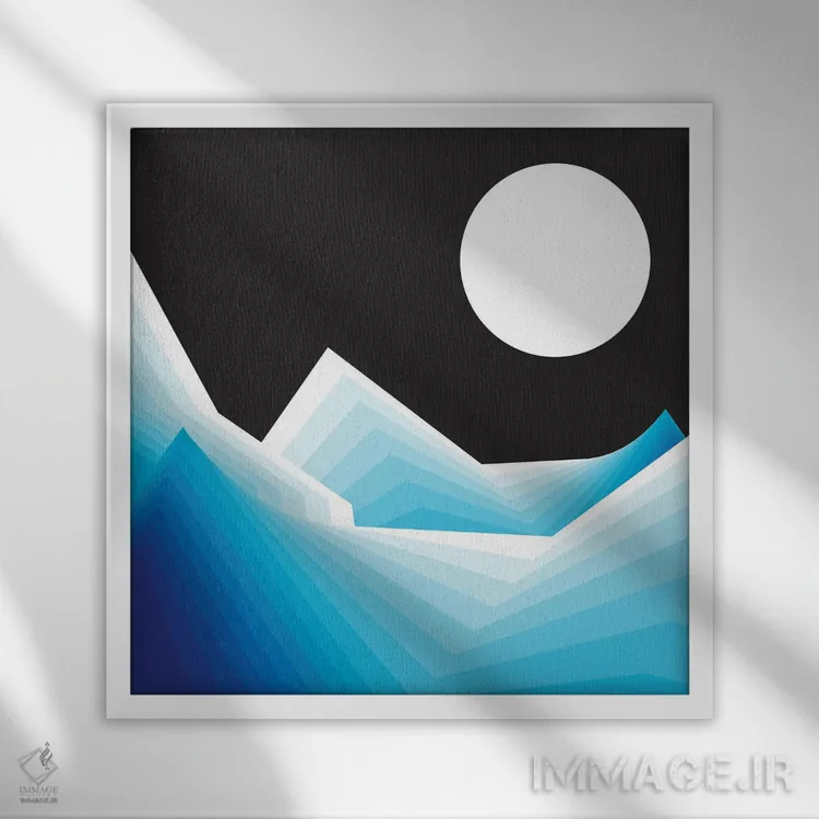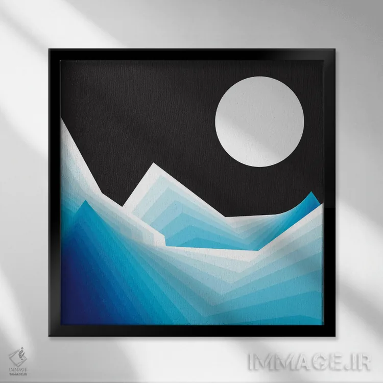براساس پالت سرد اثر، قاب سفید مات (فریم باریک) پیشنهاد اول است و نقرهای برسخورده (متالیک) مکمل. برای سفارشهای پروژهای با ابعاد و قابهای اختصاصی با ایماژ در تماس باشید.