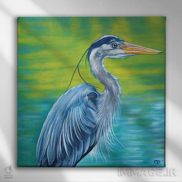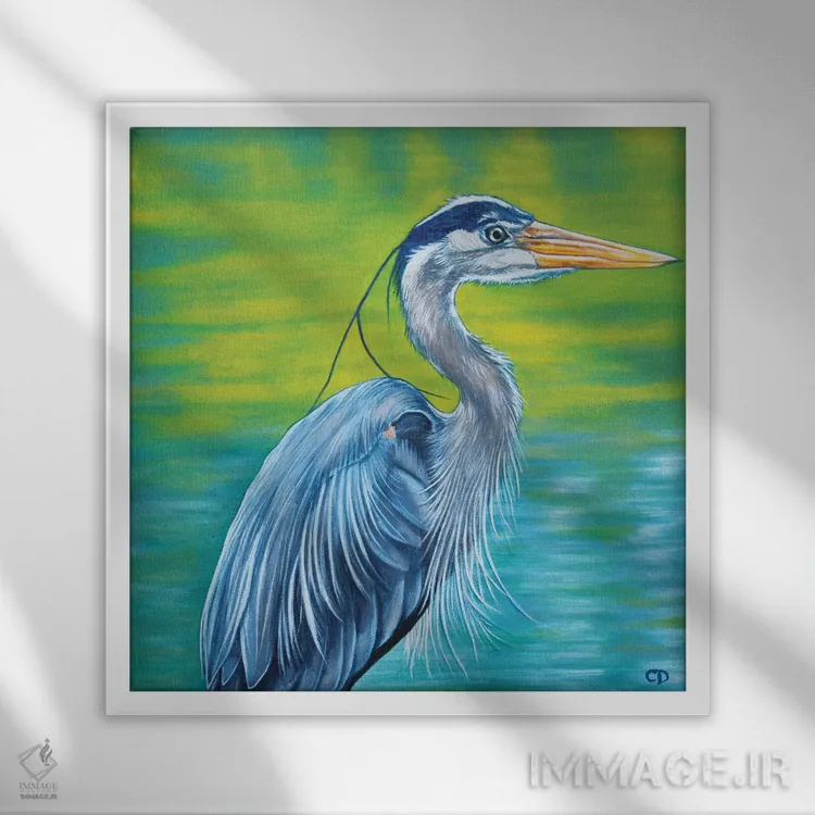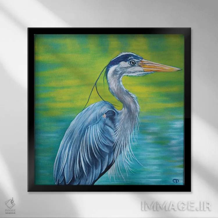اگر به آثار حیوانات علاقه دارید، «حواصیل آبی بزرگ» اثرِ «سیندی دودس» فضا را صمیمیتر و دعوتکنندهتر نشان میدهد، برای فضاهای روستیک یا بوهو گزینهٔ مناسبیست. برای دیوار گالریوار هم گزینهٔ خوبیست.