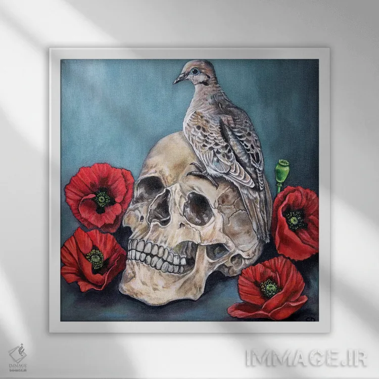 «جمجمه با کبوتر و خشخاش» اثرِ «سیندی دودس» میتواند بافت و جزئیات را طوری نشان بدهد که نگاه میماند؛ برای اتاق بازی یا گوشهٔ مطالعه پیشنهاد میشود. اگر دنبال اثر دوستداشتنیِ «بیغلو» هستید، این یکی دقیق مینشیند.