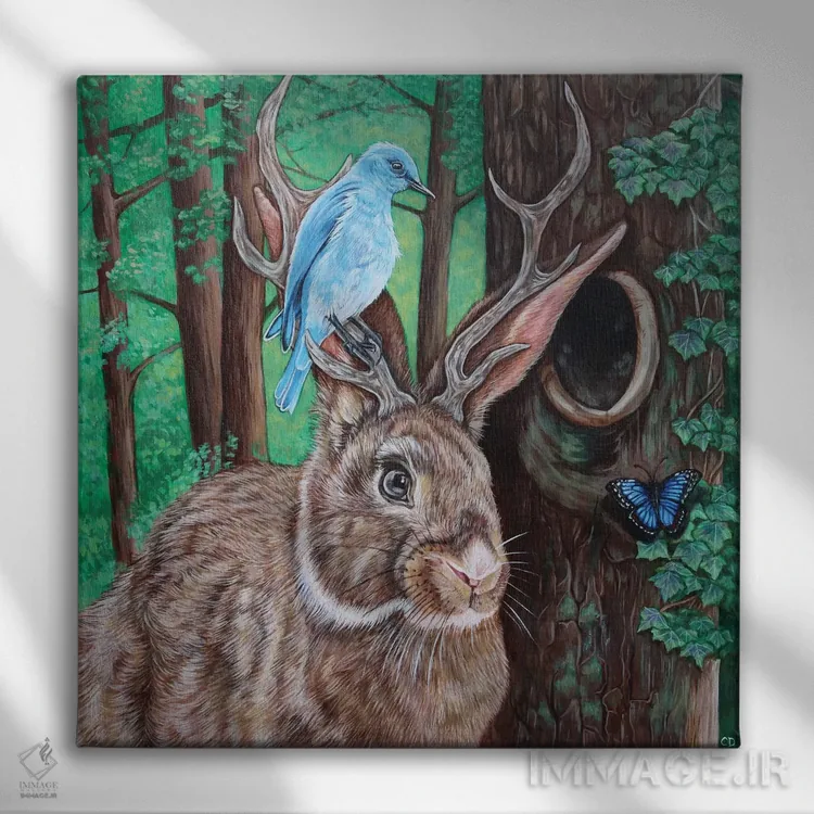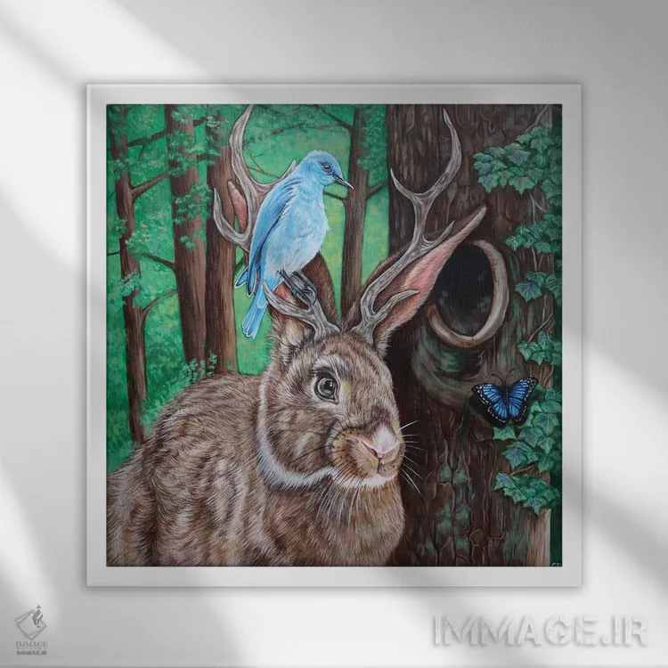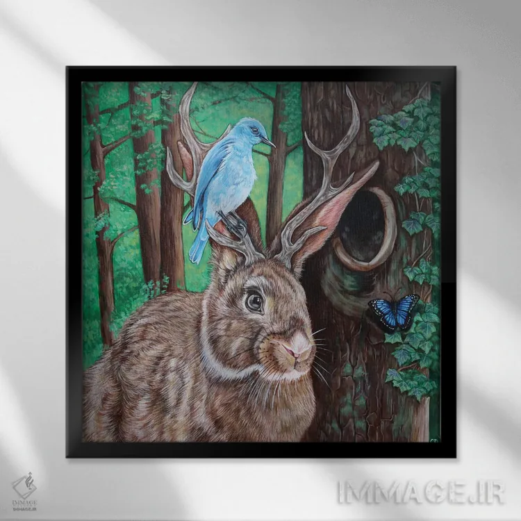 این اثر با عنوان «شاخدار افسانهای (جکلوب)» اثرِ «سیندی دودس» فضا را صمیمیتر و دعوتکنندهتر نشان میدهد؛ برای اتاق بازی یا گوشهٔ مطالعه انتخابی خوشسلیقه است. حسش صمیمی است، اما کیفیتش جدی و خوشپرداخت.