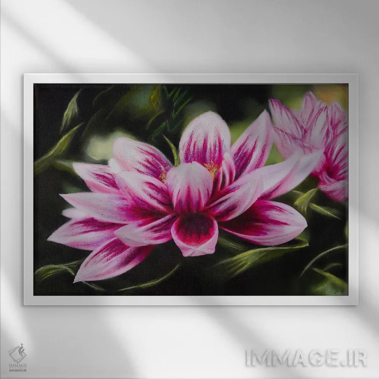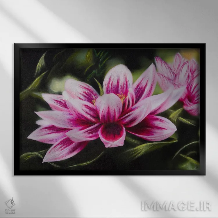 برای دیواری که میخواهید نرمتر دیده شود، «دا�یای مونه (نام گل + ارجاع به نقاش)» اثرِ «شارلوت ادر» تعادل رنگیِ لطیفی به چیدمان میدهد؛ برای راهروهای مینیمال انتخابی خوشسلیقه است. برای دیوار گالری هم ترکیبپذیر و خوشنشین است.