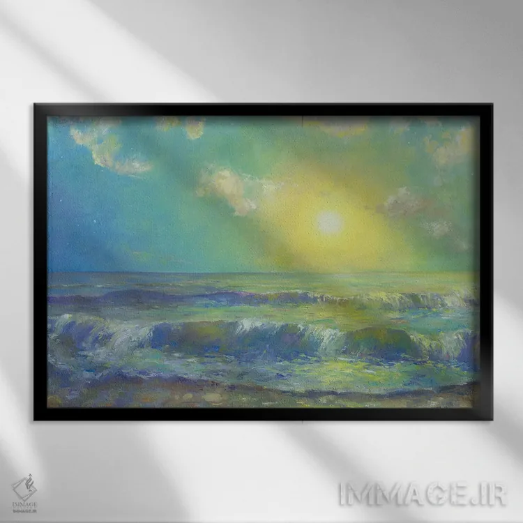 براساس پالت سرد اثر، قاب سفید مات (فریم باریک) پیشنهاد اول است و نقرهای برسخورده (متالیک) مکمل. برای سفارشهای پروژهای با ابعاد و قابهای اختصاصی با ایماژ در تماس باشید.