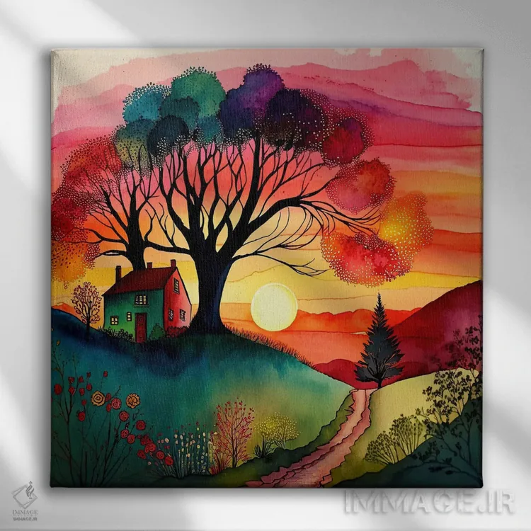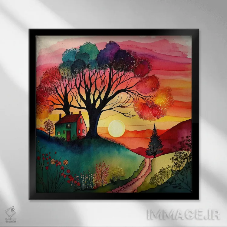تابلو غروب هنر عامیانه آبرنگی ۱ اثر استودیو کروماتیک فیوژن