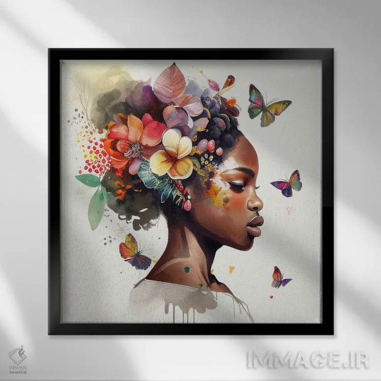 تابلو زن آفریقایی با پروانه آبرنگی ۶ اثر استودیو کروماتیک فیوژن