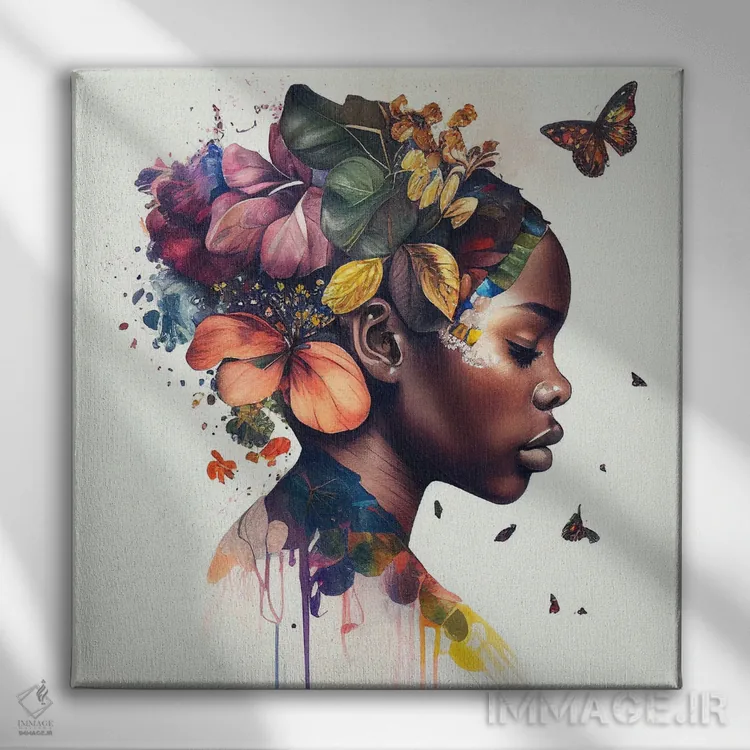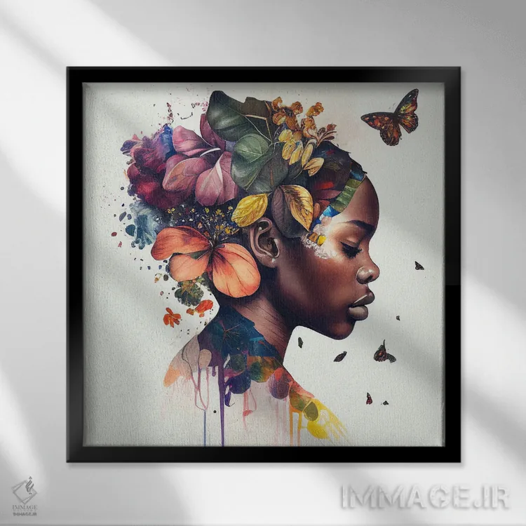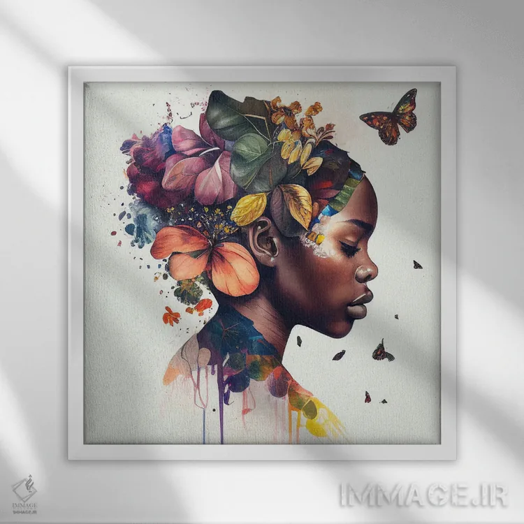 تابلو زن آفریقایی با پروانههای آبرنگی دهم اثر استودیو کروماتیک فیوژن