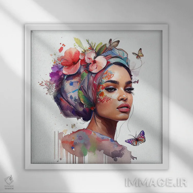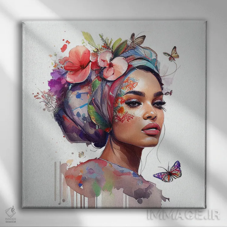 تابلو دکوراتیو زن عرب با گل های آبرنگی هفتم اثر استودیو کروماتیک فیوژن