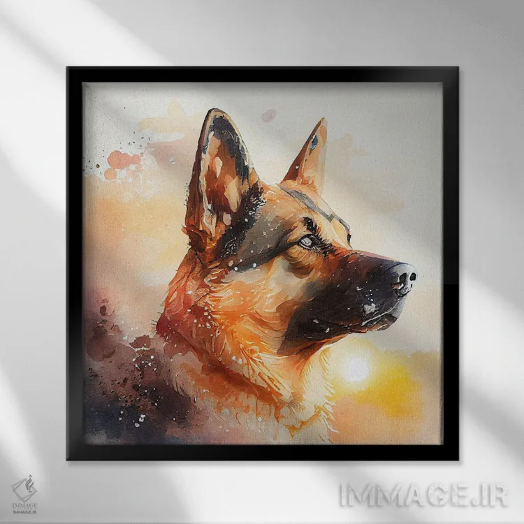 تابلو سگ ژرمن شپرد آبرنگی اثر استودیو کروماتیک فیوژن