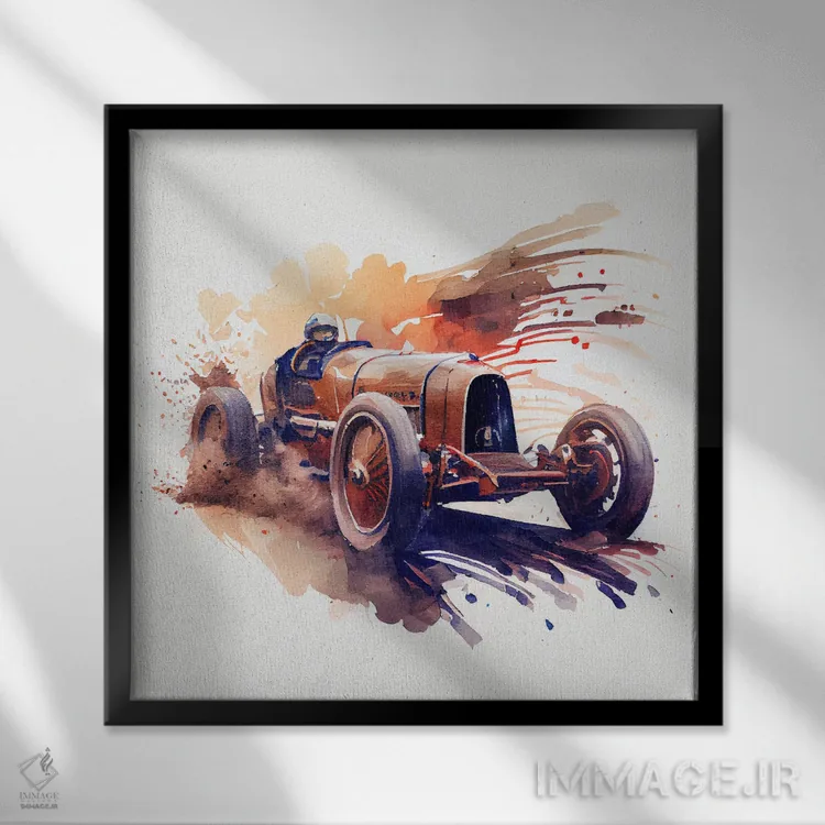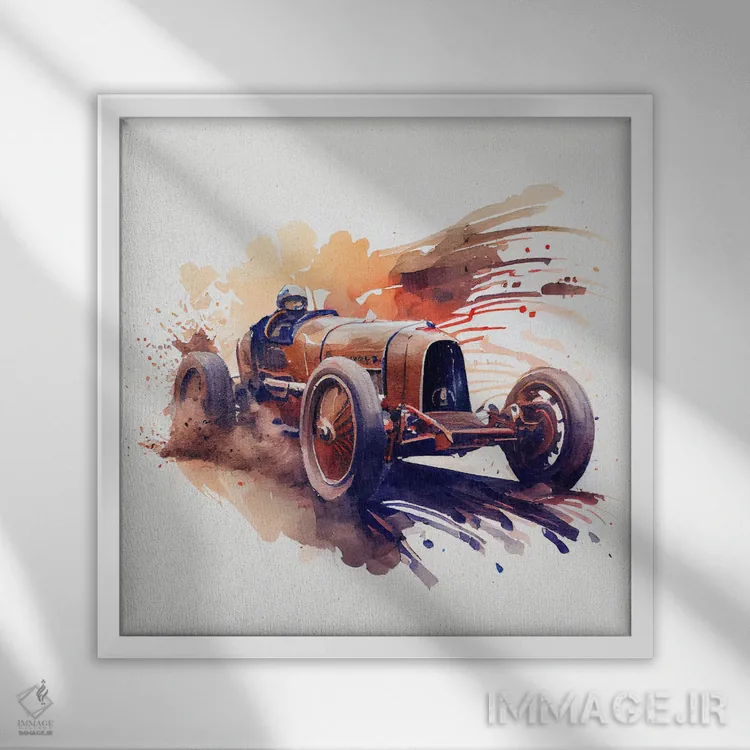 تابلو ماشین مسابقه‌ای کلاسیک آبرنگی سوم اثر استودیو کروماتیک فیوژن - نمای پرسپکتیو محصول