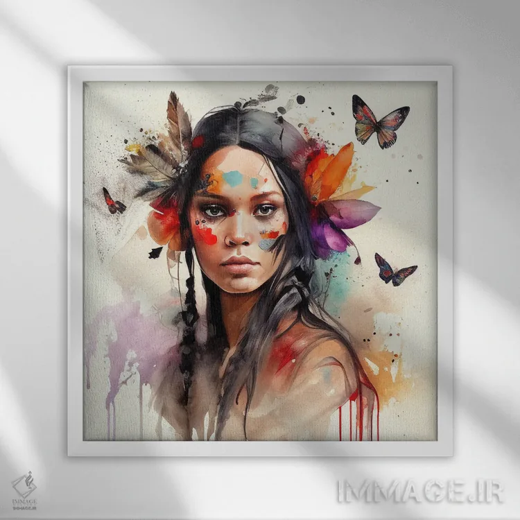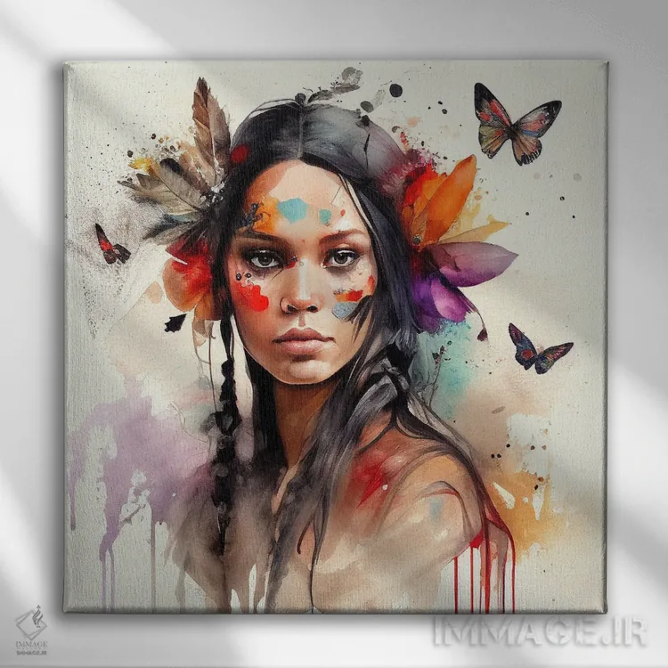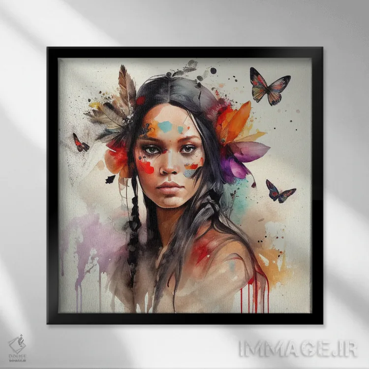 تابلو زن سرخپوست هندی با گلهای آبرنگی ششم اثر استودیو کروماتیک فیوژن