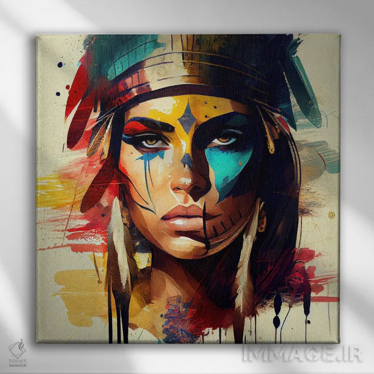 تابلو زن مبارز مصری قدرتمند یکم اثر استودیو کروماتیک فیوژن - نمای نزدیک بافت بوم