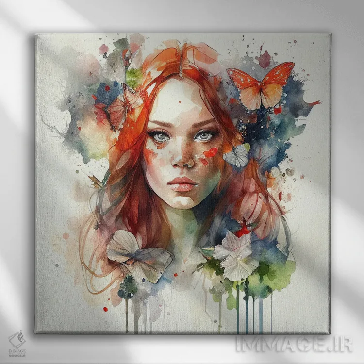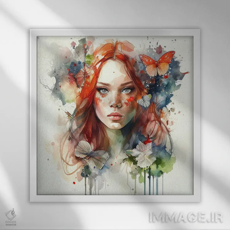 تابلو زن مو قرمز با گلهای آبرنگی هفتم اثر استودیو کروماتیک فیوژن