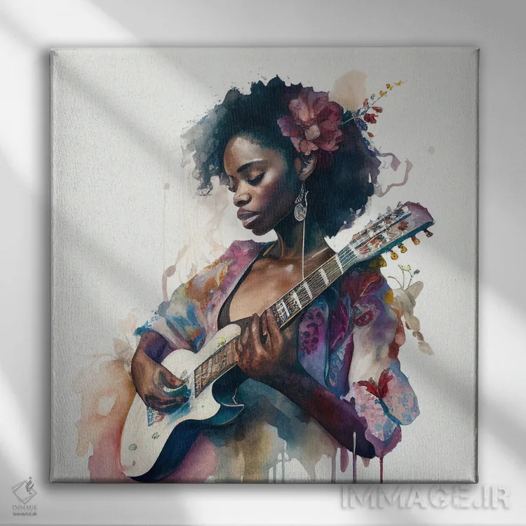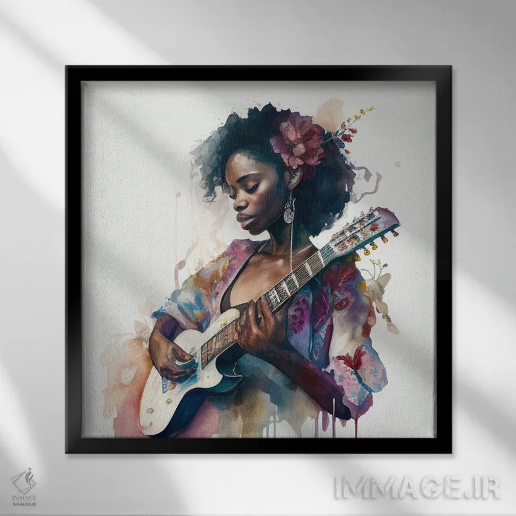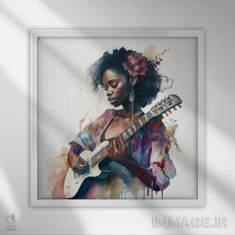 تابلو زن نوازنده آبرنگی دوم اثر استودیو کروماتیک فیوژن