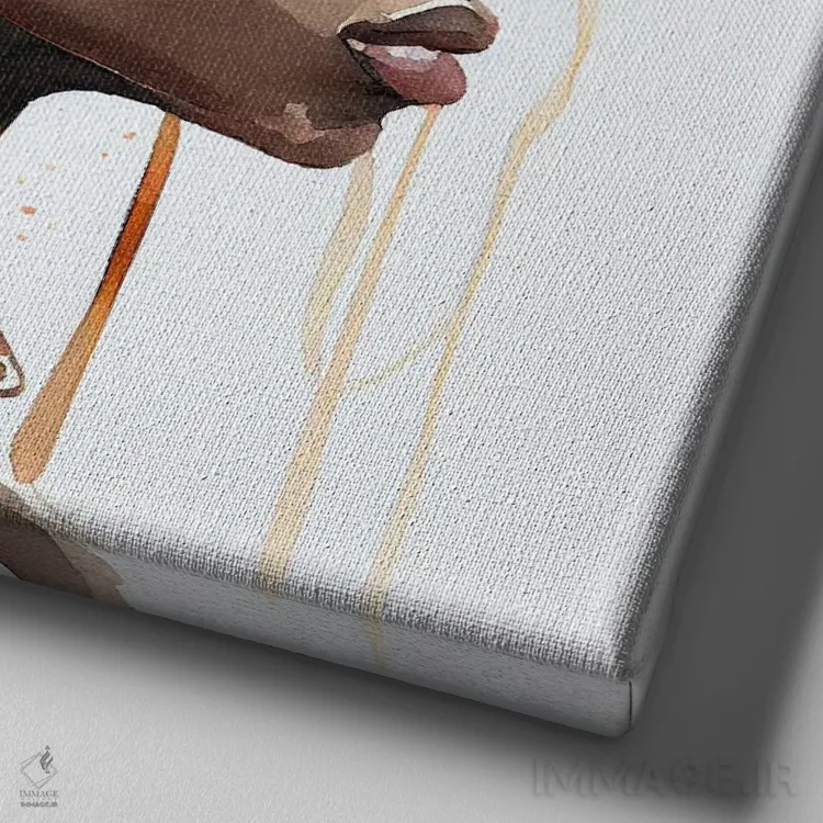 تابلو زن جنگجوی آفریقایی آبرنگی VII اثر استودیو کروماتیک فیوژن - نمای نزدیک بافت بوم