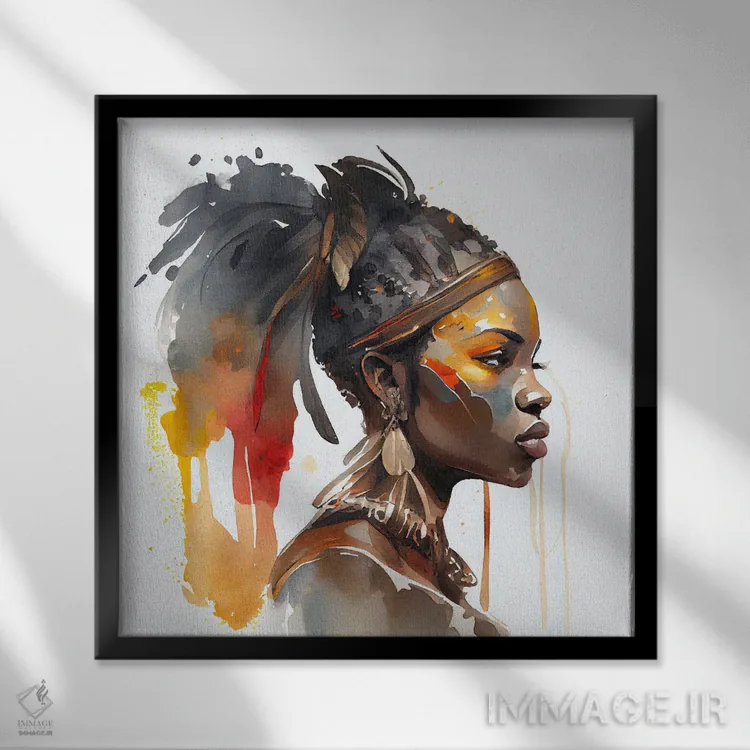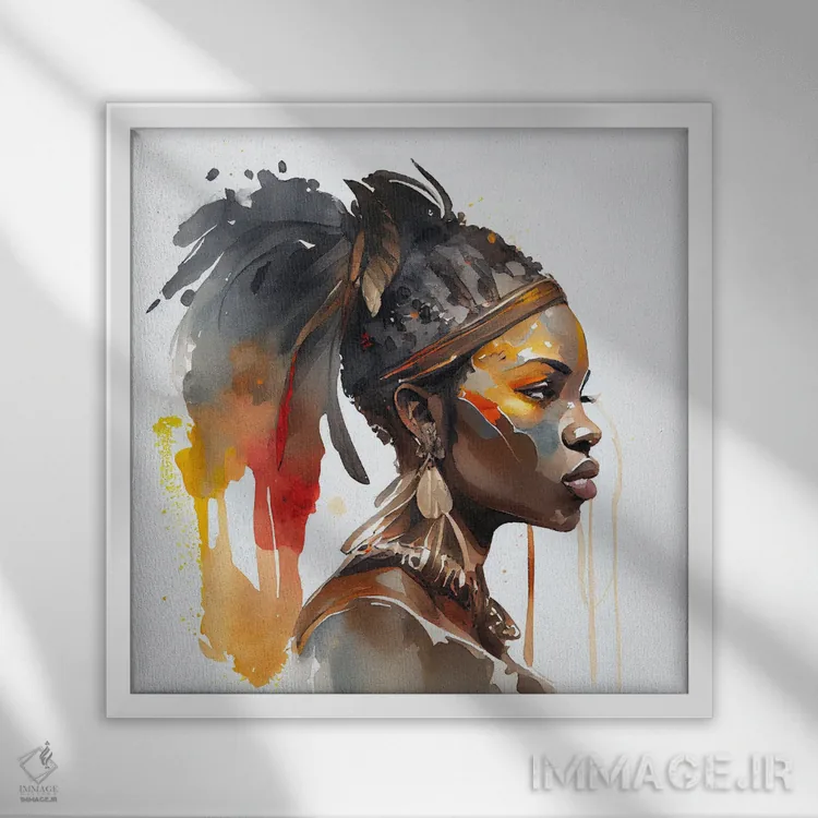 تابلو زن جنگجوی آفریقایی آبرنگی VII اثر استودیو کروماتیک فیوژن