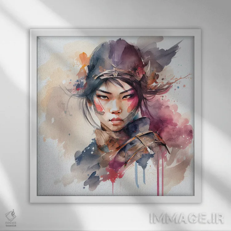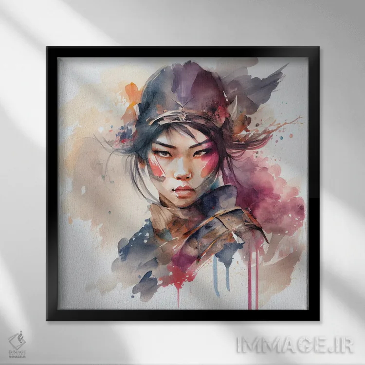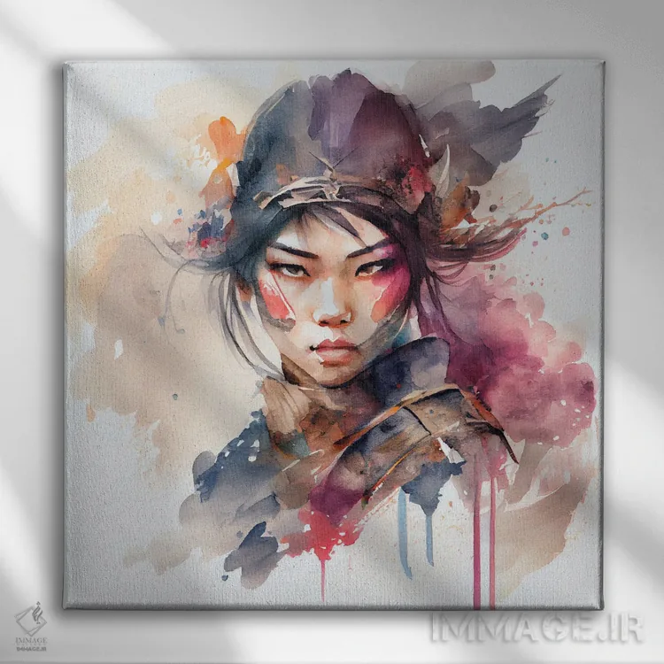 تابلو زن جنگجوی آسیایی آبرنگی III اثر استودیو کروماتیک فیوژن