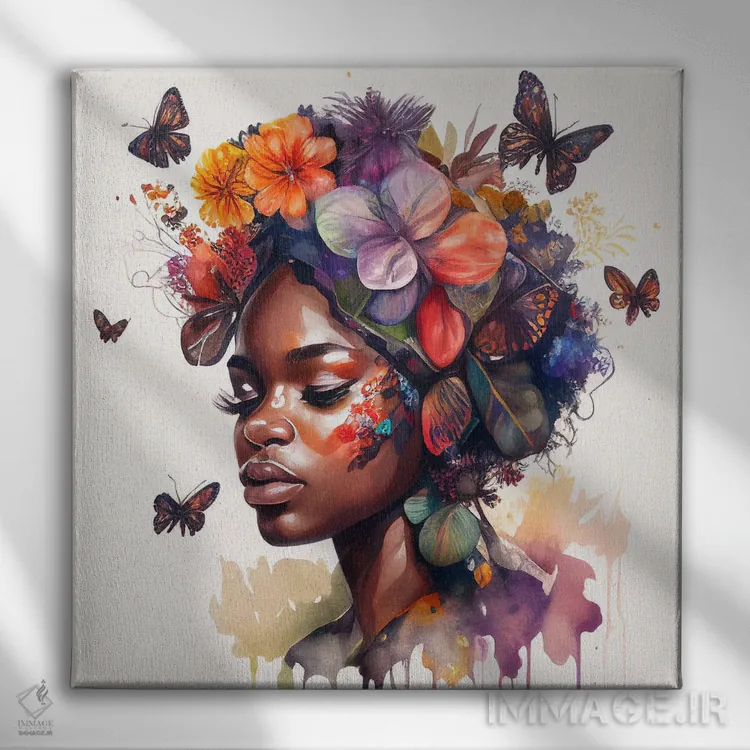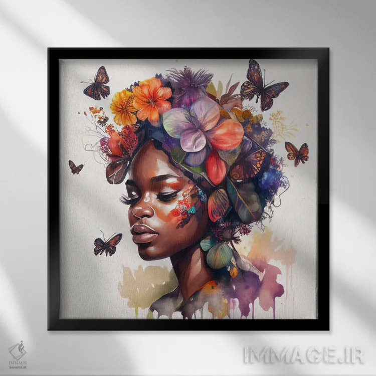 تابلو زن آفریقایی با پروانه آبرنگی II اثر استودیو کروماتیک فیوژن