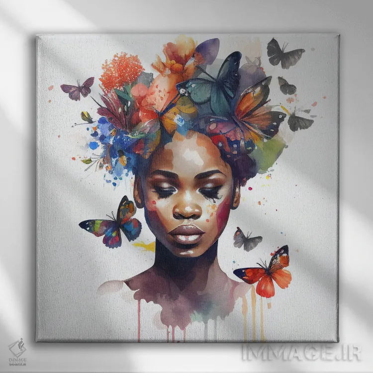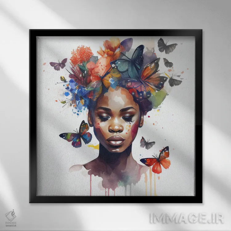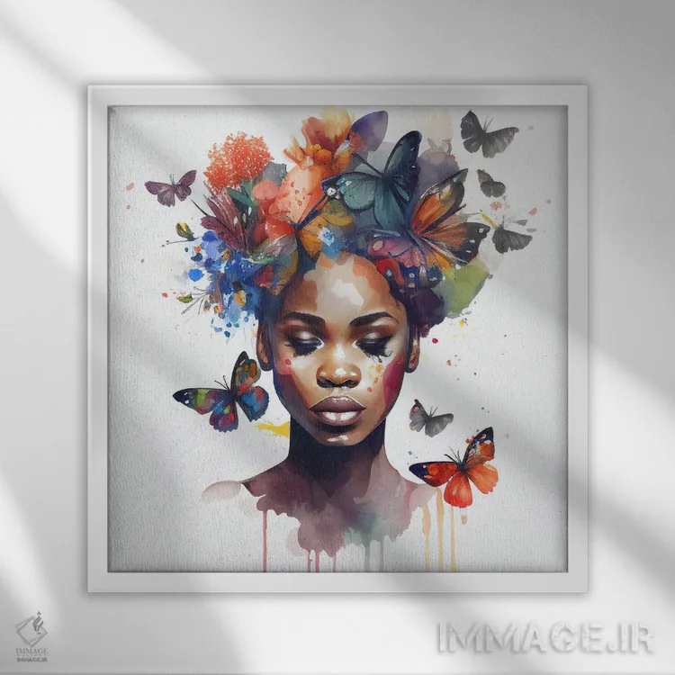 تابلو زن آفریقایی با پروانه آبرنگی IV اثر استودیو کروماتیک فیوژن