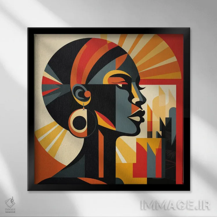 «زن جامائیکایی باوهاوس I» اثرِ «استودیو کروماتیک فیوژن» با چاشنی هنری، حس لوکسِ هندسی و مرتب به فضا میدهد—خوب برای نشیمنهای مدرن/نیمهکلاسیک.