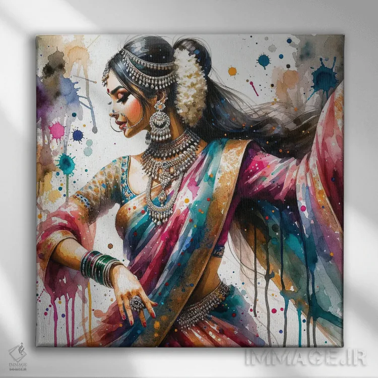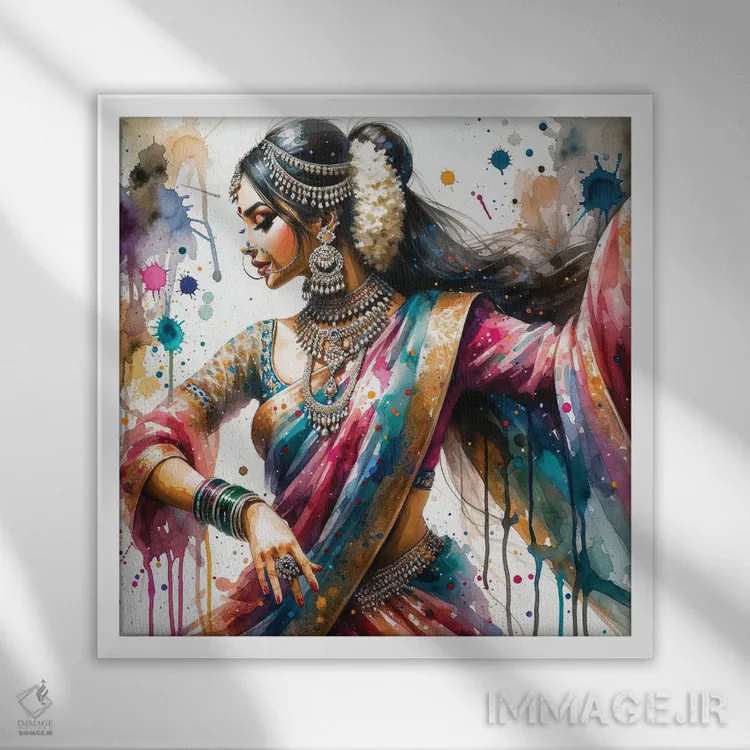 تابلو زن رقصنده هندی آبرنگی I اثر استودیو کروماتیک فیوژن - نمای پرسپکتیو محصول