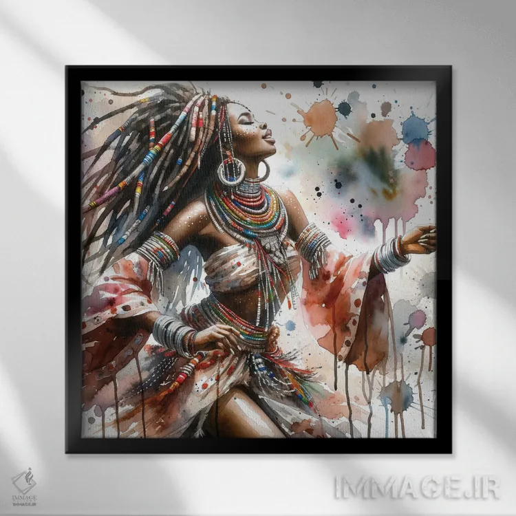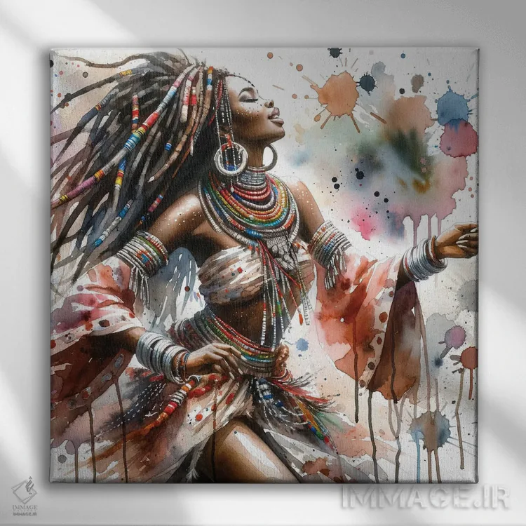 تابلو رقصنده آفریقایی آبرنگی II اثر استودیو کروماتیک فیوژن - نمای پرسپکتیو محصول