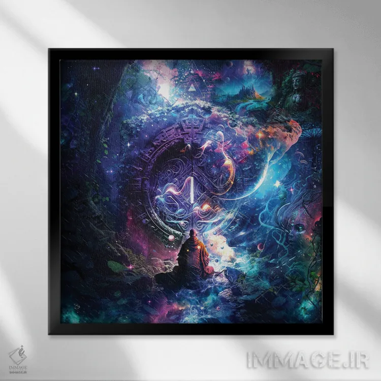 براساس پالت ترکیبی اثر، قاب تیک گرم (چوبی) پیشنهاد اول است و مشکی مات (فریم متوسط) مکمل. برای سفارشهای پروژهای با ابعاد و قابهای اختصاصی با ایماژ در تماس باشید.