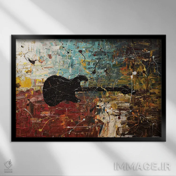 تابلو داستان گیتار اثر کارمن گودز - نمای قاب‌دار مشکی