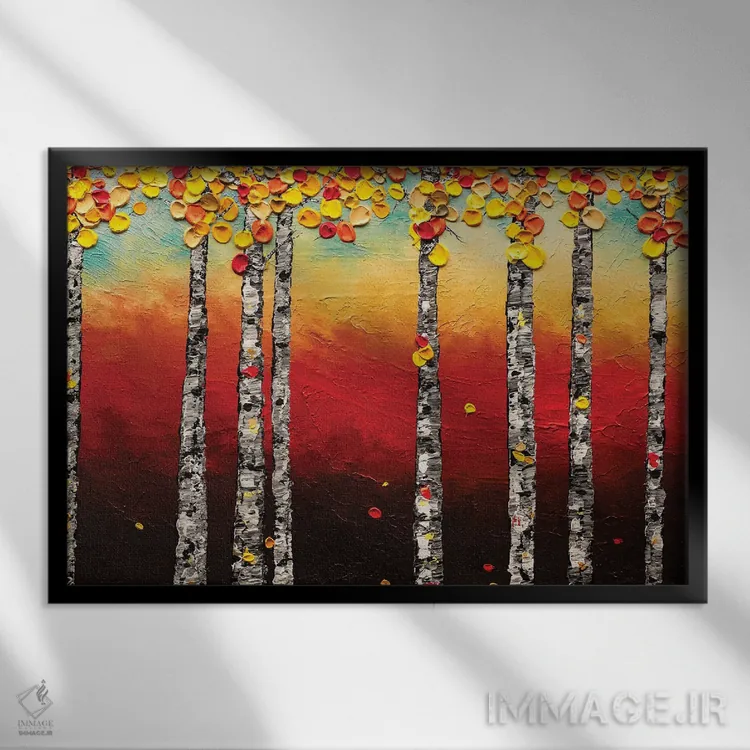 تابلو درختان غان پاییزی اثر کارمن گودز - نمای پرسپکتیو محصول