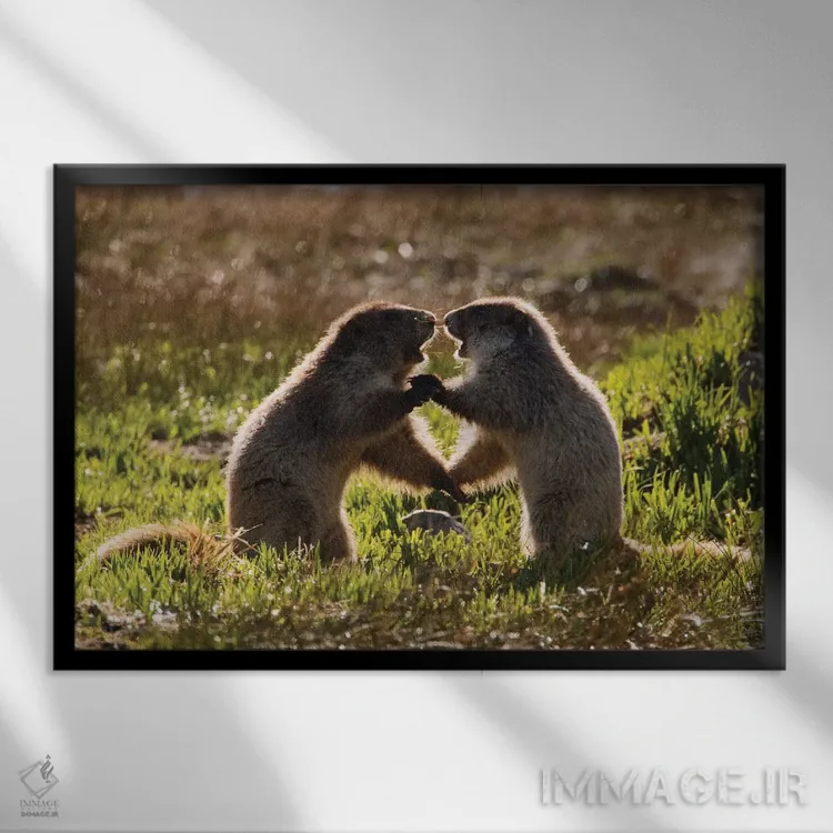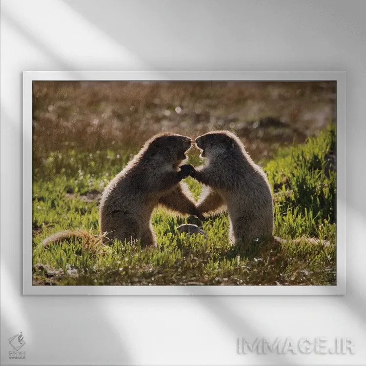 اگر میخواهید دیوار کمی سرزندگیِ محترمانه داشته باشد، «بچه مارموتهای المپیک در حال بازی» اثرِ «کن آرچر» یک لبخند ریز به چیدمان میدهد، برای دیوار کنار میز کار گزینهٔ مناسبیست. هم فضا را گرم میکند، هم شلوغش نمیکند.