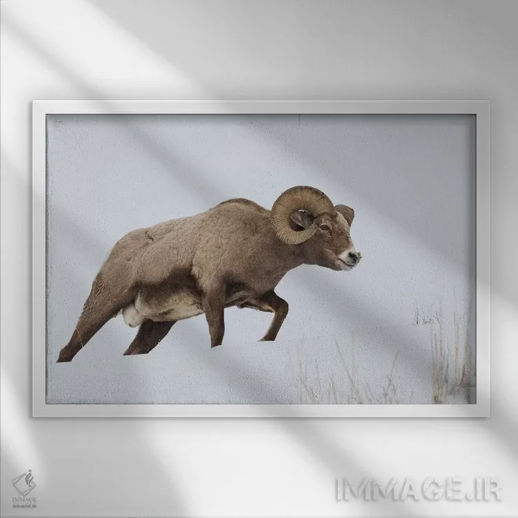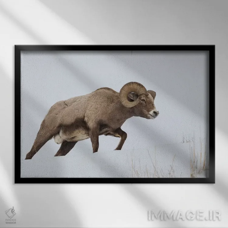 اگر به آثار حیوانات علاقه دارید، «قوچ کل بز بزرگ کوهستان راکی» اثرِ «کن آرچر» به دیوار، انرژیِ نرم و زنده میدهد، برای دکورهای مدرن و مینیمال گزینهٔ مناسبیست. هر بار نگاهش میکنید، یک جزئیات تازه به چشم میآید.