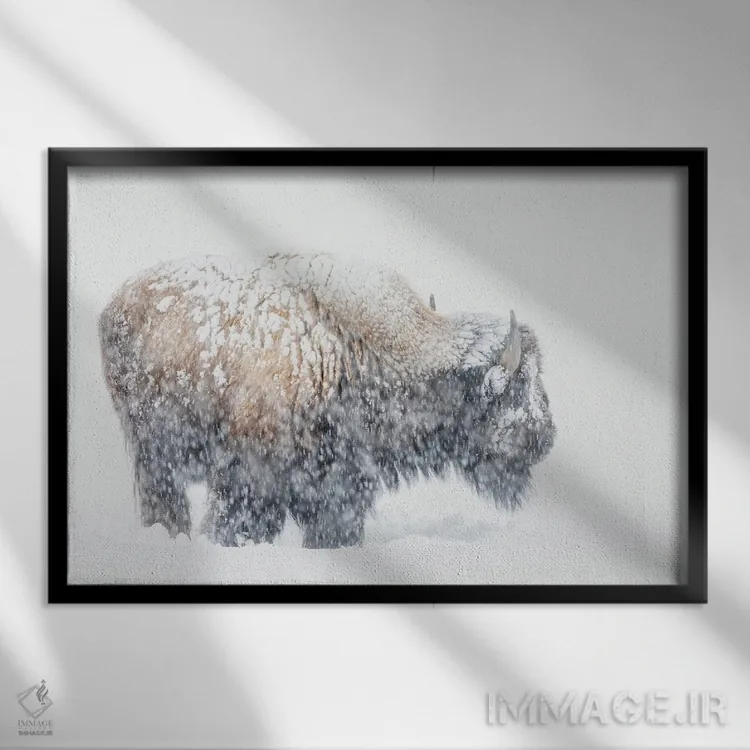 تابلو دکوراتیو Winter Storm,گاومیش کوهان دار آمریکایی، طوفان زمستانی اثر کن آرچر