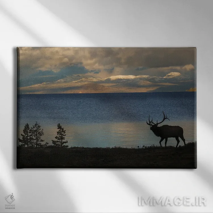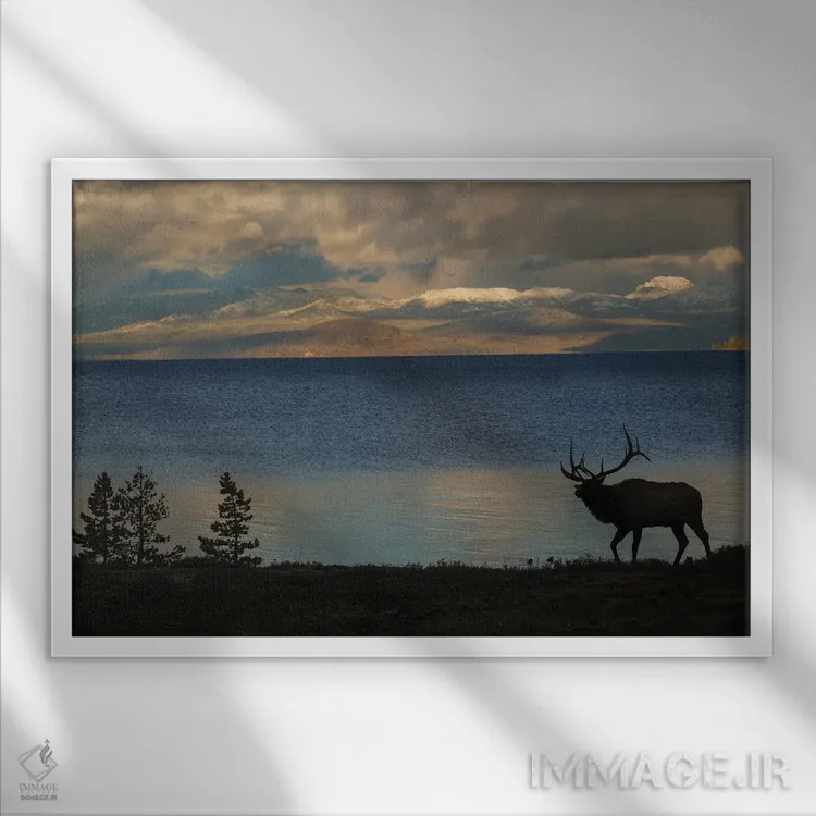 موضوع این اثر در «Wyoming، USA، سیلوئت گوزن نر در یلواستون، وایومینگ، آمریکا» اثرِ «کن آرچر» طوری اجرا شده که هم دوستداشتنی است و هم شیک—نه صرفاً فانتزی.