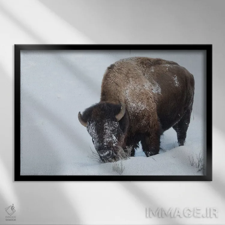اگر به آثار حیوانات علاقه دارید، «گاومیش کوهاندار آمریکایی، نر، جستجو در برف عمیق» اثرِ «کن آرچر» به فضا، گرمیِ ملایم اضافه میکند، برای دکورهایی با رنگهای خنثی گزینهٔ مناسبیست. هم فضا را گرم میکند، هم شلوغش نمیکند.