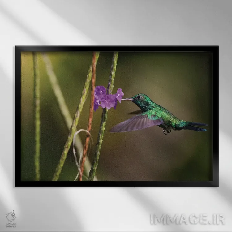 «زمرد گلوآبی (پرنده)» اثرِ «کن آرچر» میتواند حس طبیعت را بیدغدغه وارد خانه کند؛ برای دیوار کنار میز کار پیشنهاد میشود. حسش صمیمی است، اما کیفیتش جدی و خوشپرداخت.