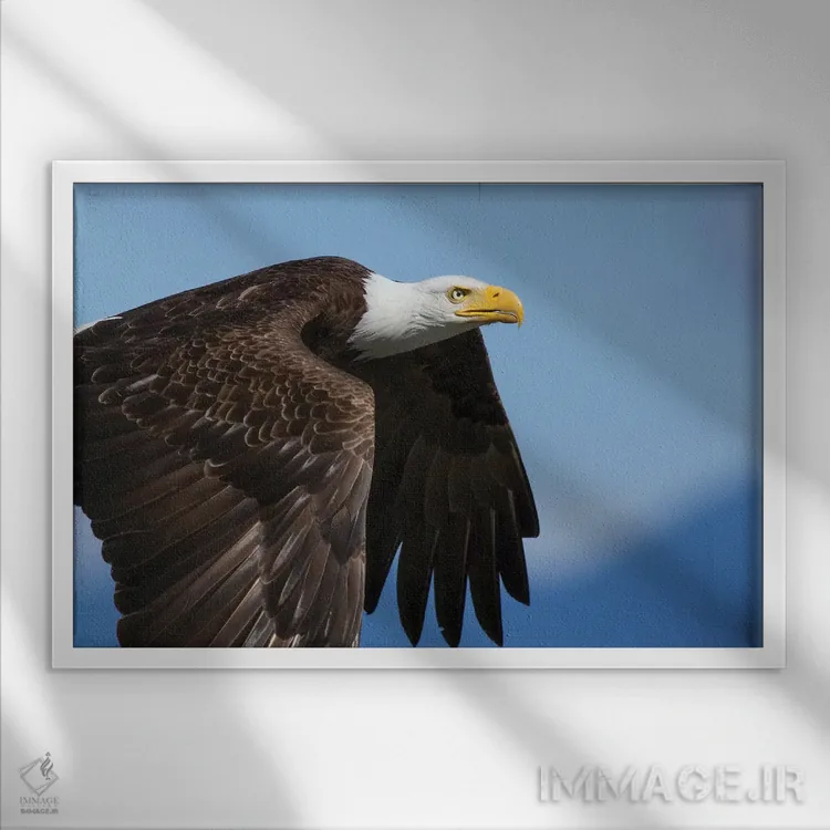تابلو پرواز عقاب سرسفید ۲ اثر کن آرچر - نمای قاب‌دار سفید
