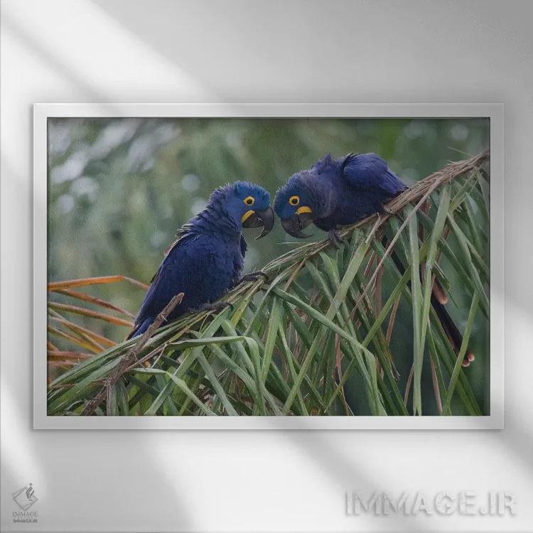در «جفت ماکائوی سنبل» اثرِ «کن آرچر»، حضور حیوانات بدون کودکانه شدن، بازیگوش و خوشپرداخت میماند؛ برای دکورهایی با رنگهای خنثی انتخابی خوشسلیقه است. با قاب چوبی یا مشکی، حس مرتبتری پیدا میکند.