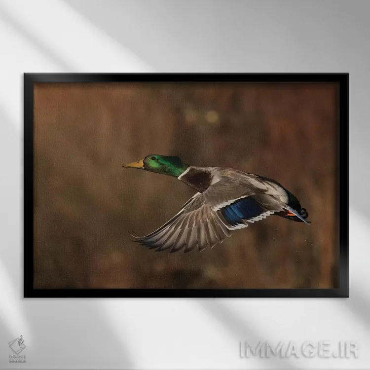 این اثر با عنوان «اردک سرسبز نر در حال پرواز» اثرِ «کن آرچر» برای دکورهای مینیمال، یک نقطهٔ توجه میسازد؛ برای خانههایی با چوب و پارچههای گرم انتخابی خوشسلیقه است. به دیوار، قصه میدهد—اما قصهای آرام و شیک.
