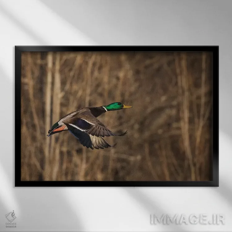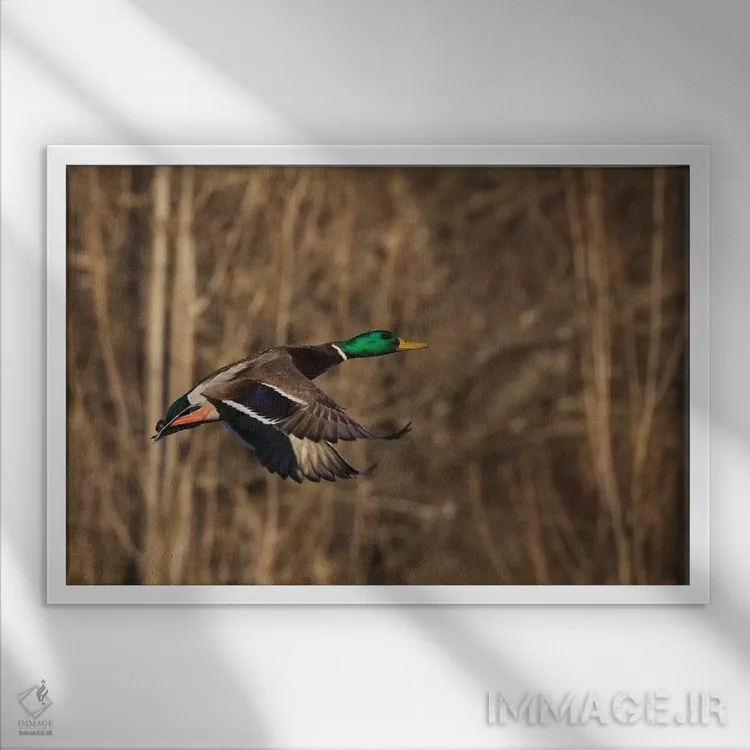 برای دکورهای صمیمی، «اردک سرسبز نر در حال پرواز» اثرِ «کن آرچر» به دیوار، انرژیِ نرم و زنده میدهد؛ برای نشیمنهای خانوادگی انتخابی خوشسلیقه است. برای دیوار گالریوار هم گزینهٔ خوبیست.