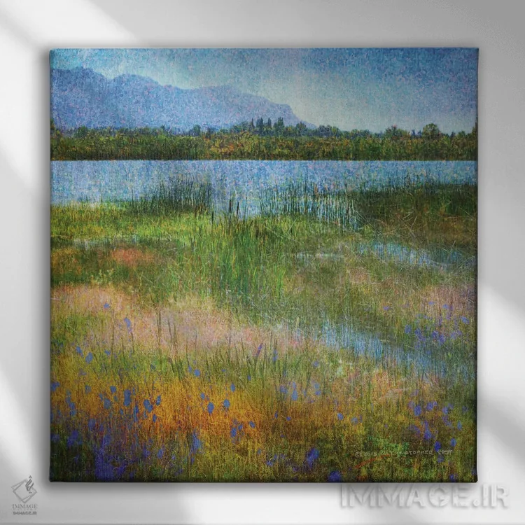 تابلو دریاچه نزدیک مسا ورده اثر کریستوفر وست - نمای نزدیک بافت بوم