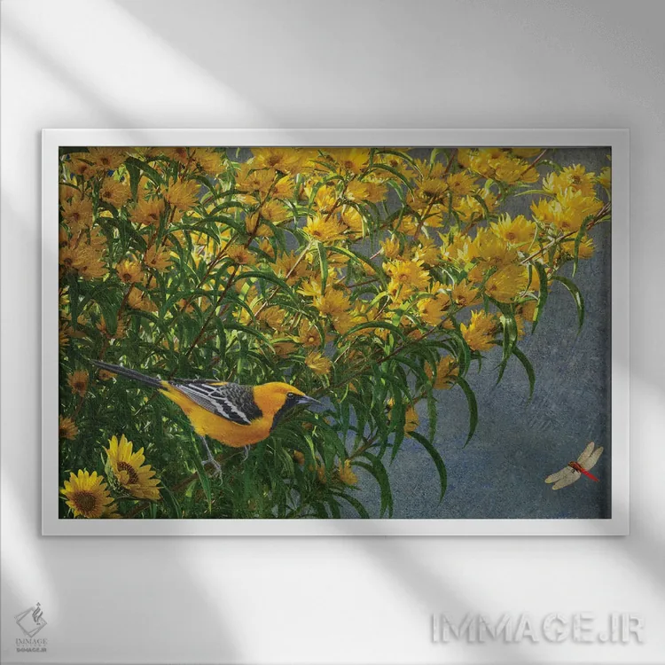 تابلو بلبل گل‌های زرد اثر کریستوفر وست