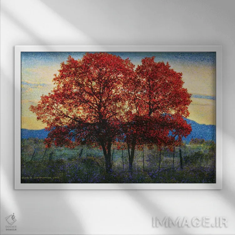 در «دو درخت بلوط» اثرِ «کریستوفر وست»، گلها و گیاهان جزئیات نزدیک را چشمنواز نشان میدهد؛ برای کنار میز آرایش یا کنسول انتخابی خوشسلیقه است. همیشه بهروز میماند و با فصلها خوب کنار میآید.
