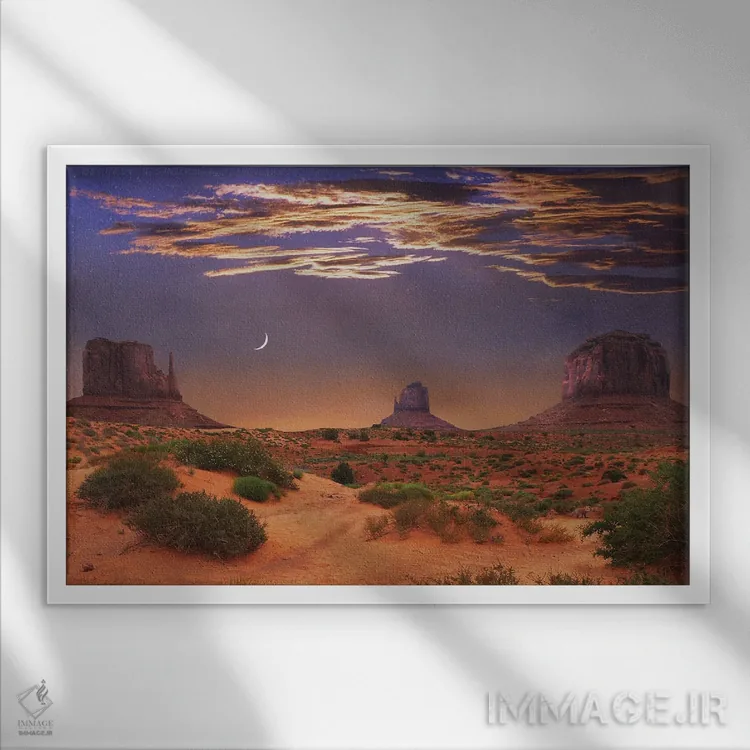 تابلو مریک و دستکش‌ها (منظره‌ی Monument Valley) اثر کریستوفر وست - نمای قاب‌دار سفید