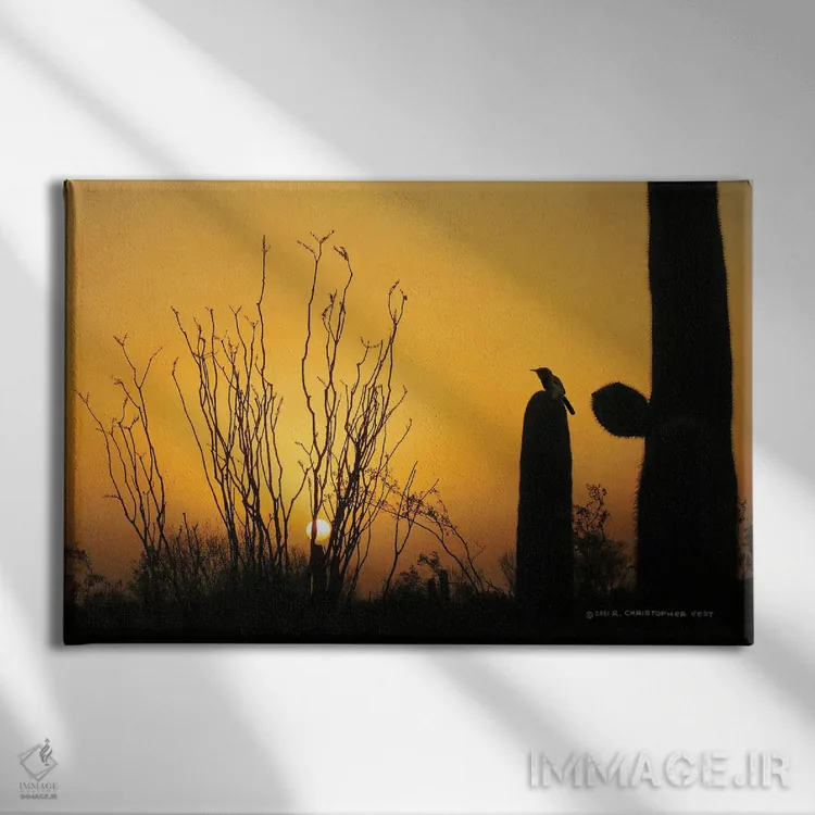تابلو مرغ خارخار غروب با کاکتوس (پرنده) اثر کریستوفر وست - نمای پرسپکتیو محصول